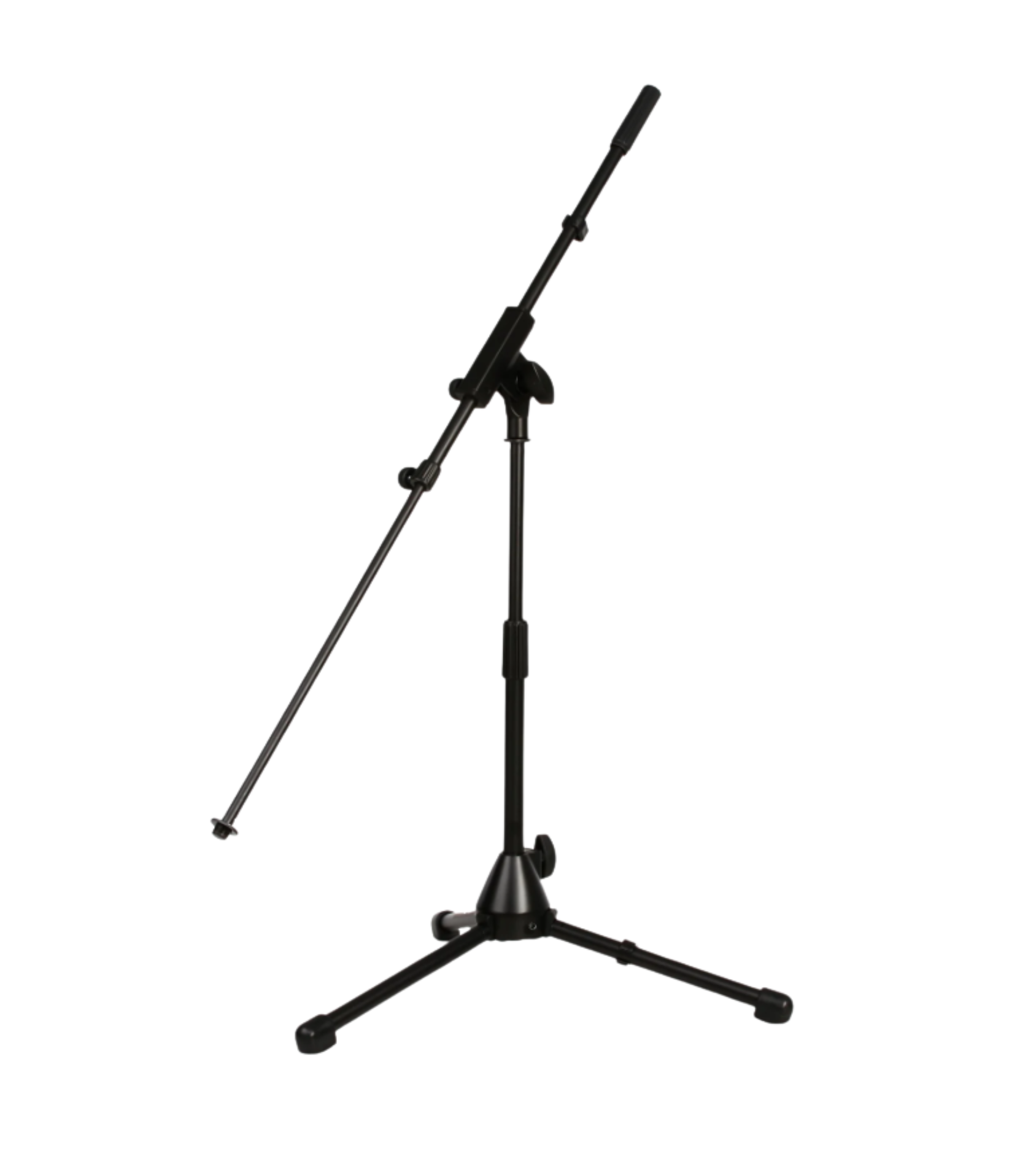 A wide, splayed base gives our MS7411TB Drum/Amp Tripod Mic Stand with Tele Boom the stability of larger models, while its compact size permits easy placement in tight spaces. Height, boom angle, and boom length are all adjustable, enabling precise miking of drums and amps. This model also features telescopic boom shafts that can extend to reach every part of a drum kit. The tripod base folds down for convenient storage and transportation.