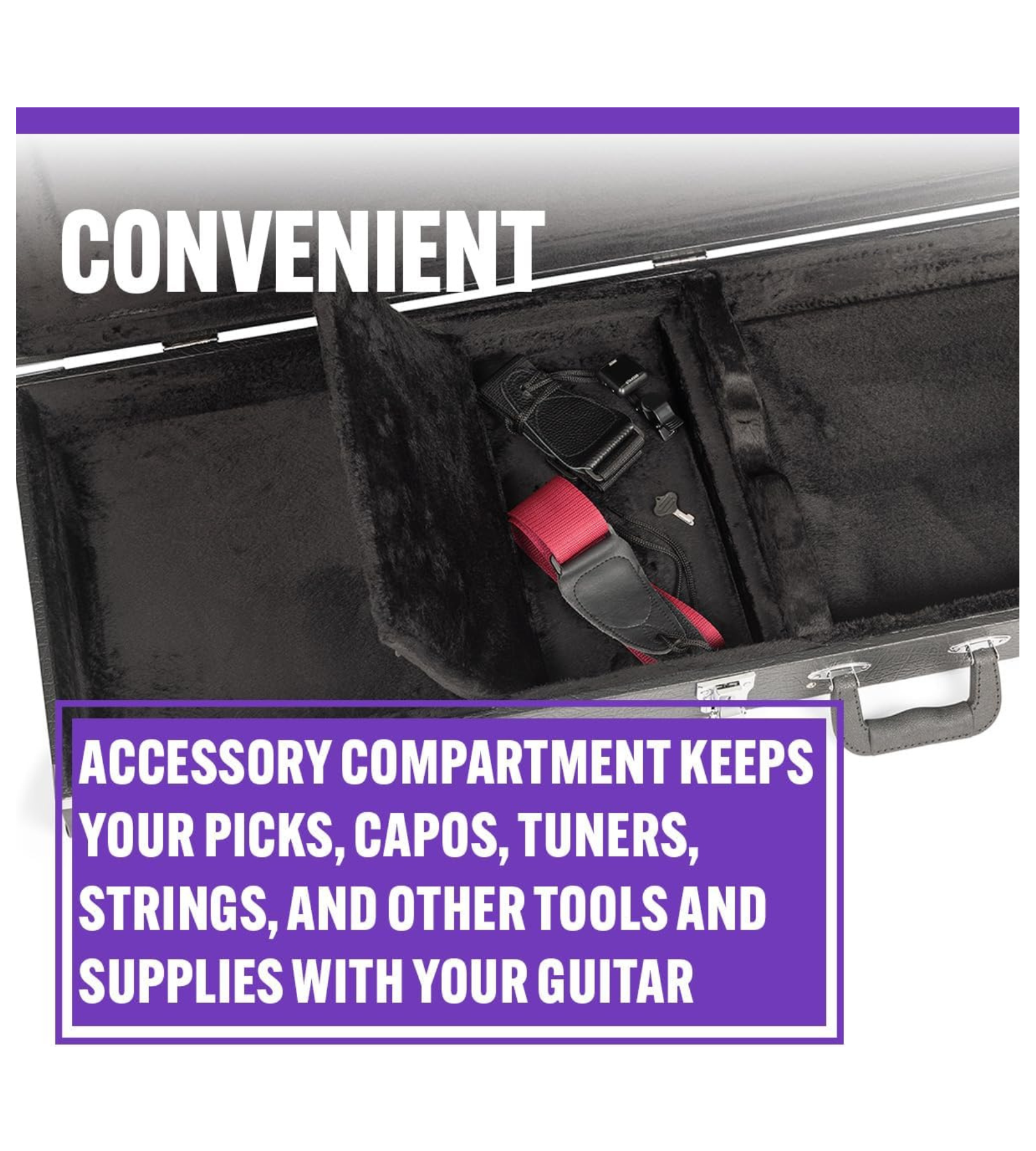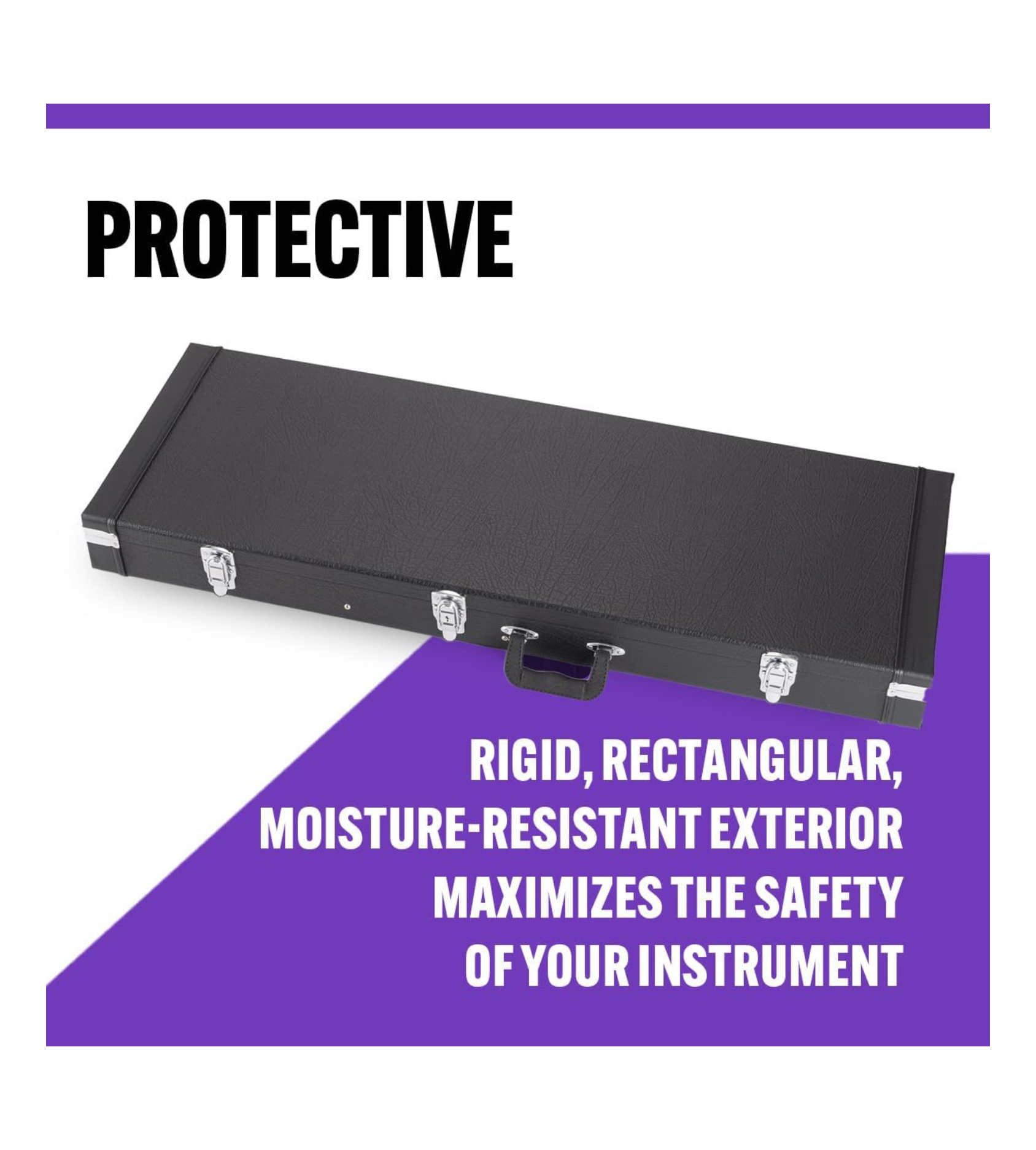 On-Stage's hardshell guitar cases are sized and custom-molded to provide protection and transporting ease for your guitar. The series includes three models; all cases are constructed from quality materials with reinforced piping on all exterior edges. A custom molded interior keeps the guitar stable with full neck support and also features a soft plush lining and an accessories compartment, perfect for picks and capos.