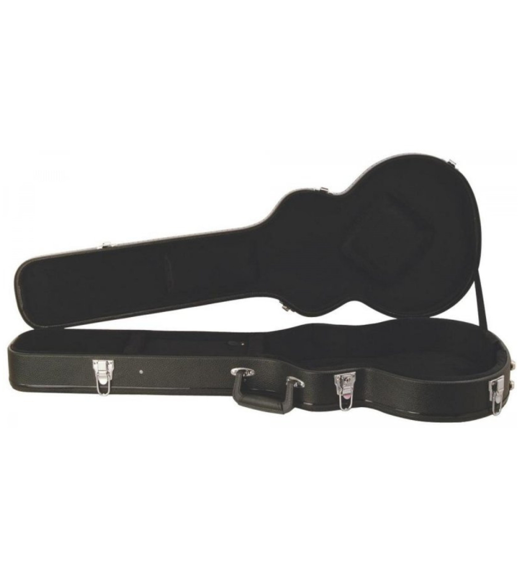 Enjoy dependable protection, storage, and transportation for a single-cutaway solid-body electric guitar with our GCLP7000 Hardshell Single-Cutaway Electric Guitar Case. Along with a weather-resistant skin that defends against the elements, the case features a rigid structure that stabilizes and supports the guitar body and neck. The soft plush interior lining safeguards the instrument finish. An accessories compartment provides convenient access to supplies and tools. Sturdy metal latches ensure that the lid stays closed and, to prevent tampering, one latch includes a built-in lock. The centered top handle enables balanced, comfortable carrying.