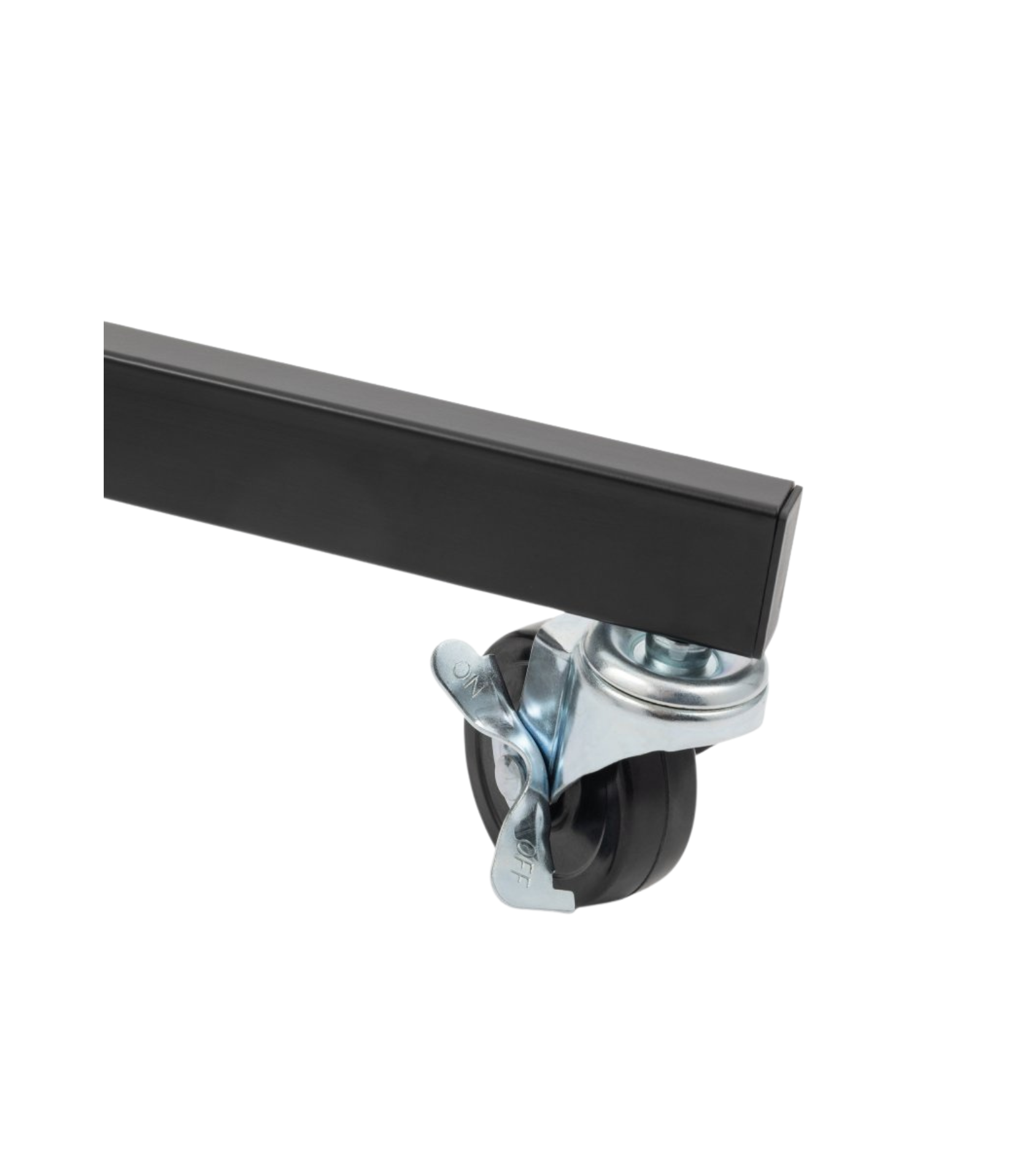 Our height-adjustable SB96+ Tripod Studio Mic Boom with 7" Mini Boom Extension combines an extra-long telescoping boom with an adjustable-angle 7" extension shaft. This configuration enables precise mic placement in a huge variety of angles and heights and also features a counterweight that balances heavy mics for ease of positioning. Four locking folding legs on locking casters create a super stable foundation that is also easy to move. The base folds down for convenient storage and transportation.