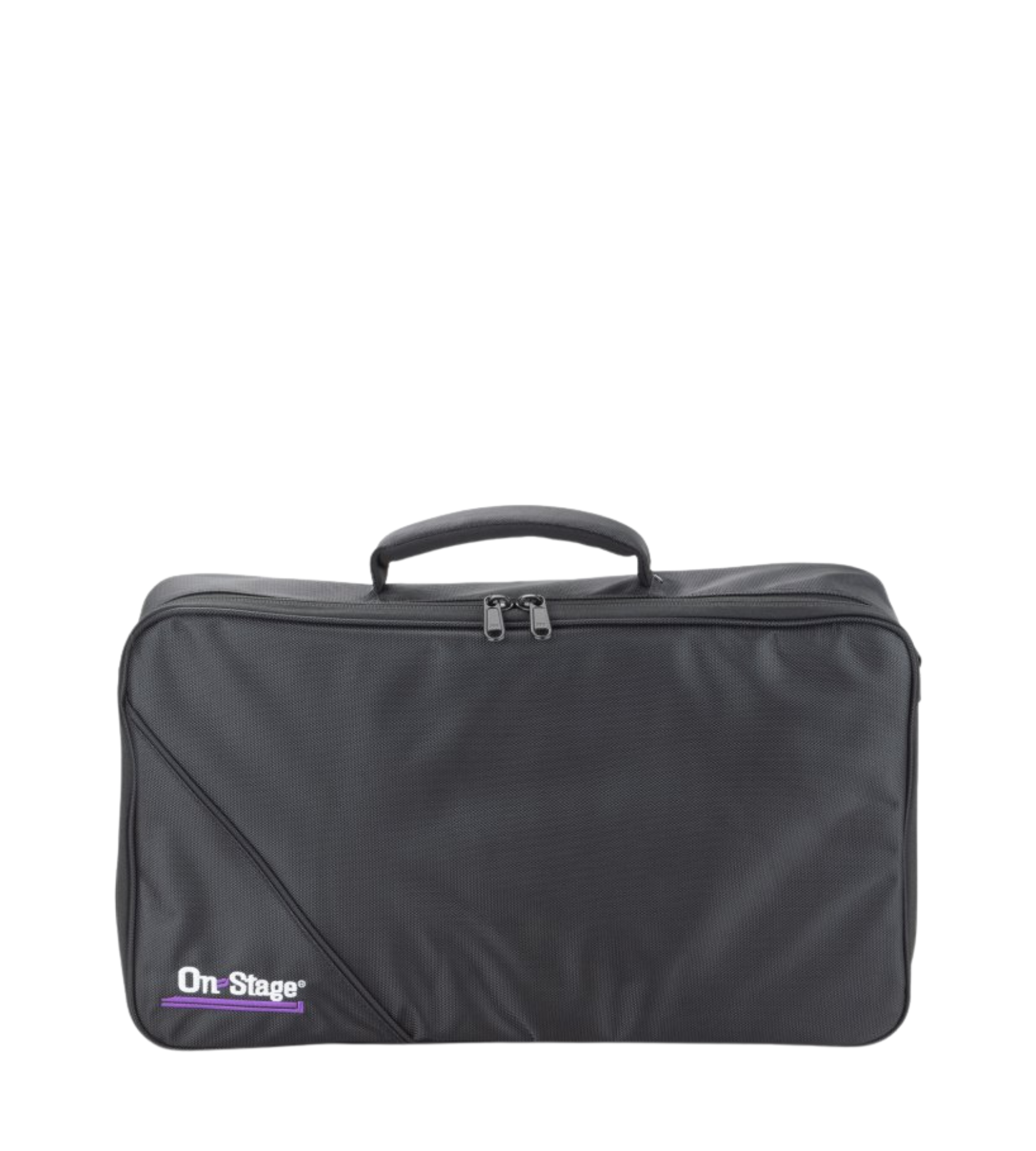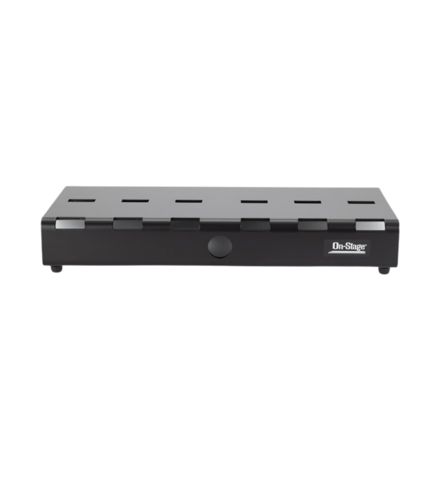 Our GPB3000 Pedalboard with Gig Bag enables efficient, prewired set up and transportation for multiple effect pedals. The pedalboard securely holds up to 10 standard-size pedals and is angled toward a guitarist for comfortable viewing and operation. The pedal platform is conveniently slotted for tidy cable arrangement. Nonslip rubber feet keep gear safely in place on the floor. Plenty of adhesive hook-and-loop strips are included to cover the platform and pedals for proper mounting. For ease of carrying, the pedalboard also comes with a protective padded gig bag that features a removable shoulder strap and a top handle.