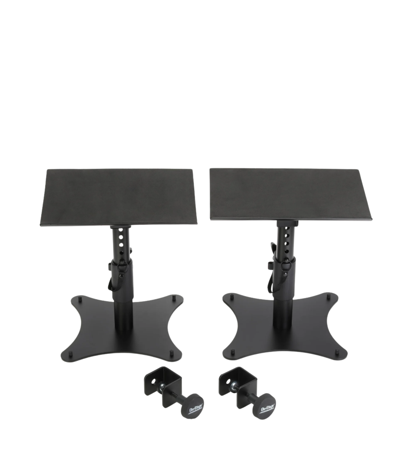 Studios of every size need a solid set of monitors, and arranging them effectively can be the difference between a mediocre and a masterful mix! So, for even the tightest of setups, On-Stage has a fantastic solution in the form of its SMS4500-P Desktop Monitor Stands. These durable, all-steel stands are engineered to blend flexible arrangement options with high-quality sonic stabilization. The 10x10-inch base is outfitted with rubber feet to serve as the first layer of audio preservation, designed to be shock-absorbent for unimpeded audio playback. An ultra-secure pin-locking system gives you an adjustable height of nine to 12.5 inches, with an added 15-degree angle adjustment range, ensuring your sound lines are laser-focused.