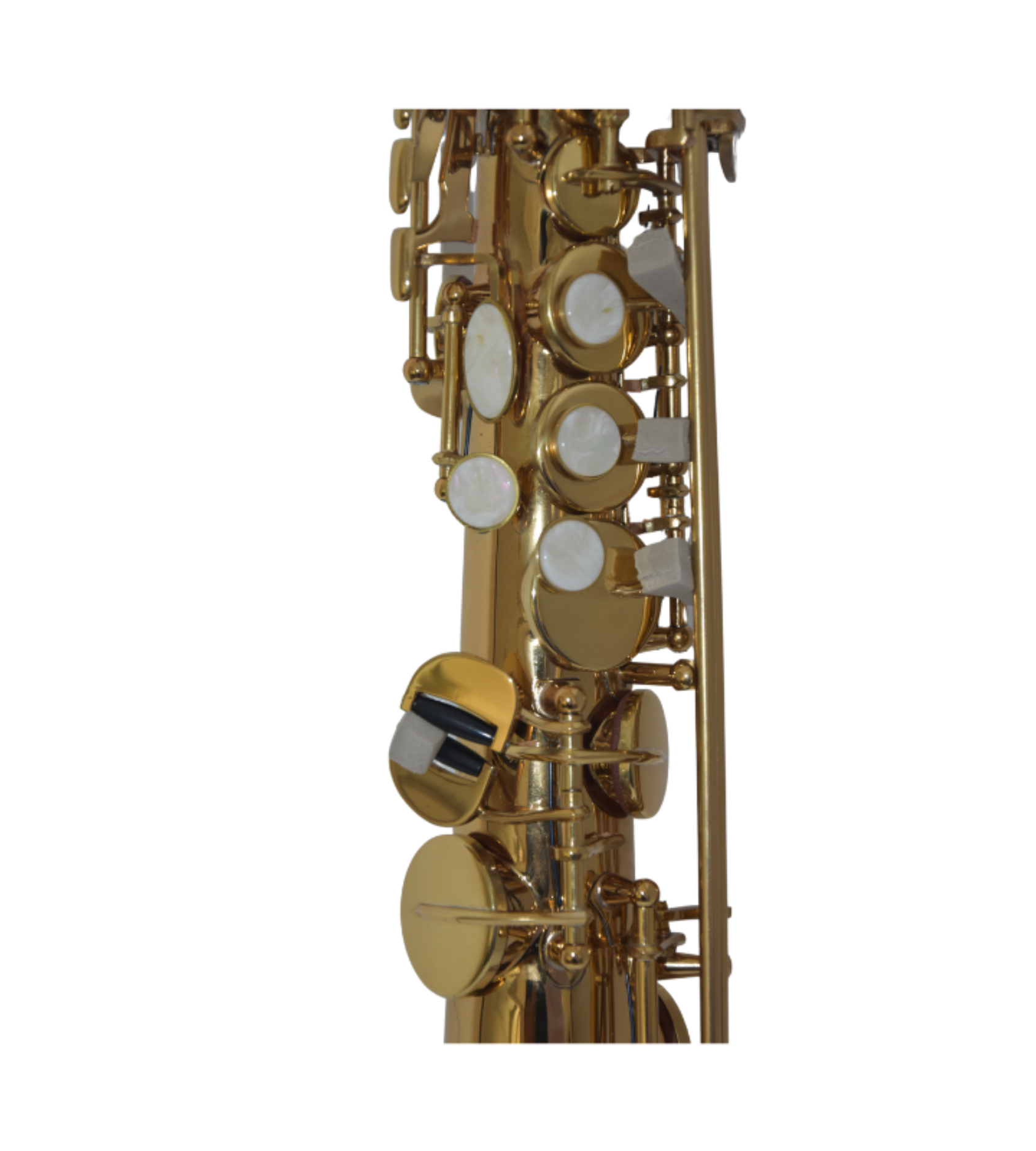 The ADI 6433L Straight Soprano Saxophone features a brilliant golden lacquer finish and delivers rich, vibrant tone—perfect for players seeking both style and performance.