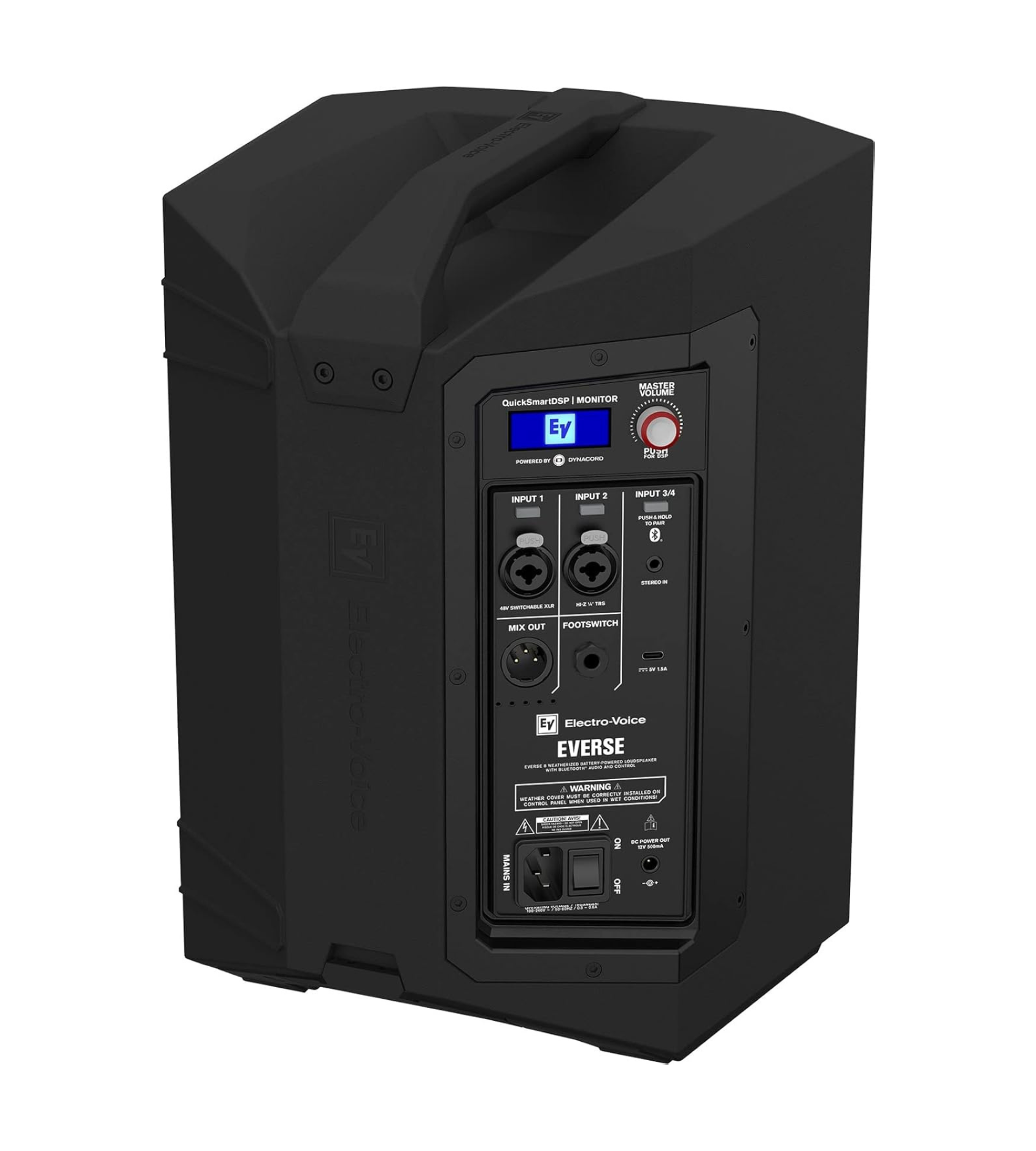 Despite its pro-level output, the EVERSE 8 remains compact and easy to transport with a soft-touch handle and lightweight build. Bluetooth® connectivity allows full wireless control and monitoring through the EV QuickSmart Mobile app, letting you adjust EQ, volume, and effects remotely from your phone or tablet with ease.