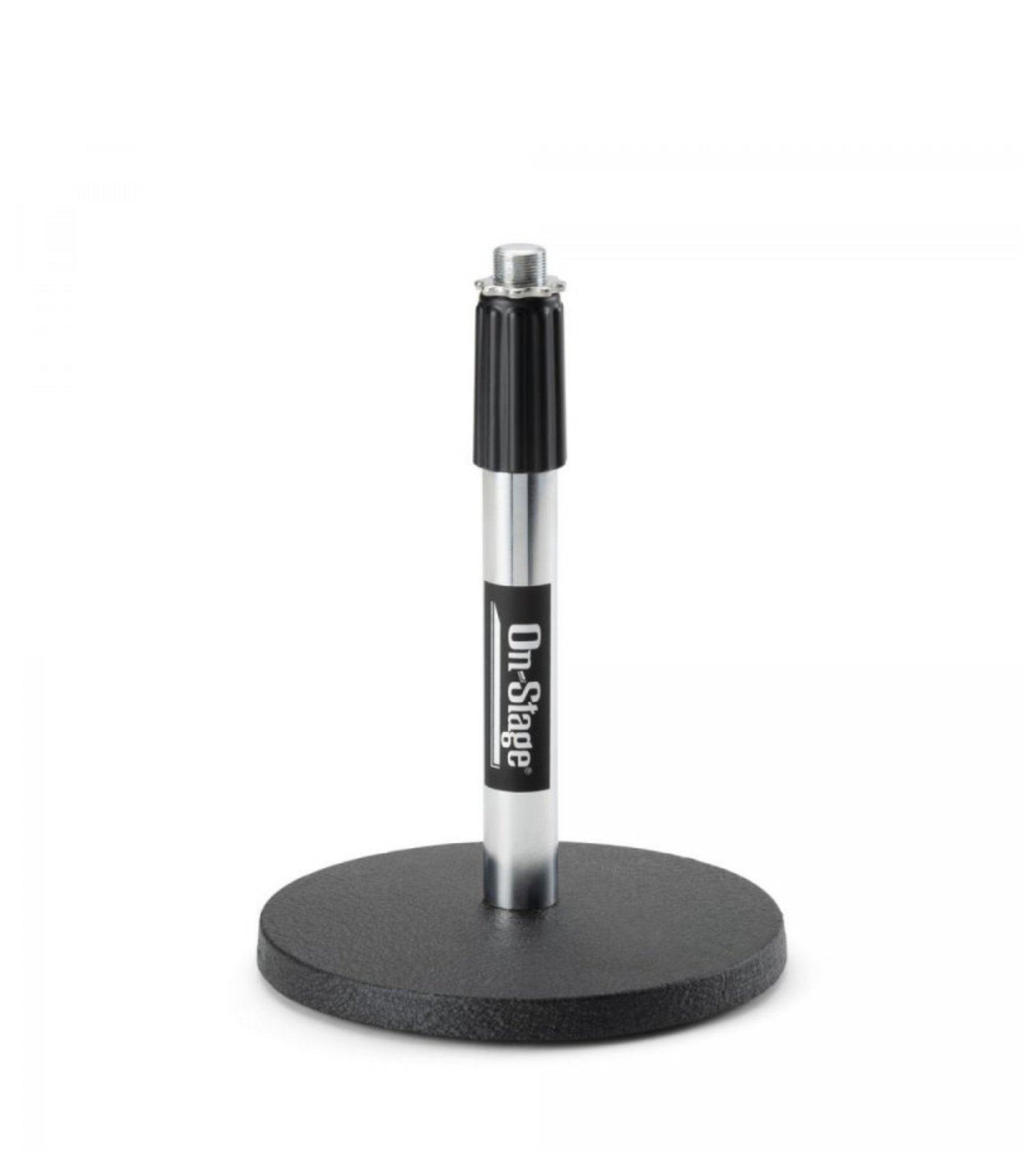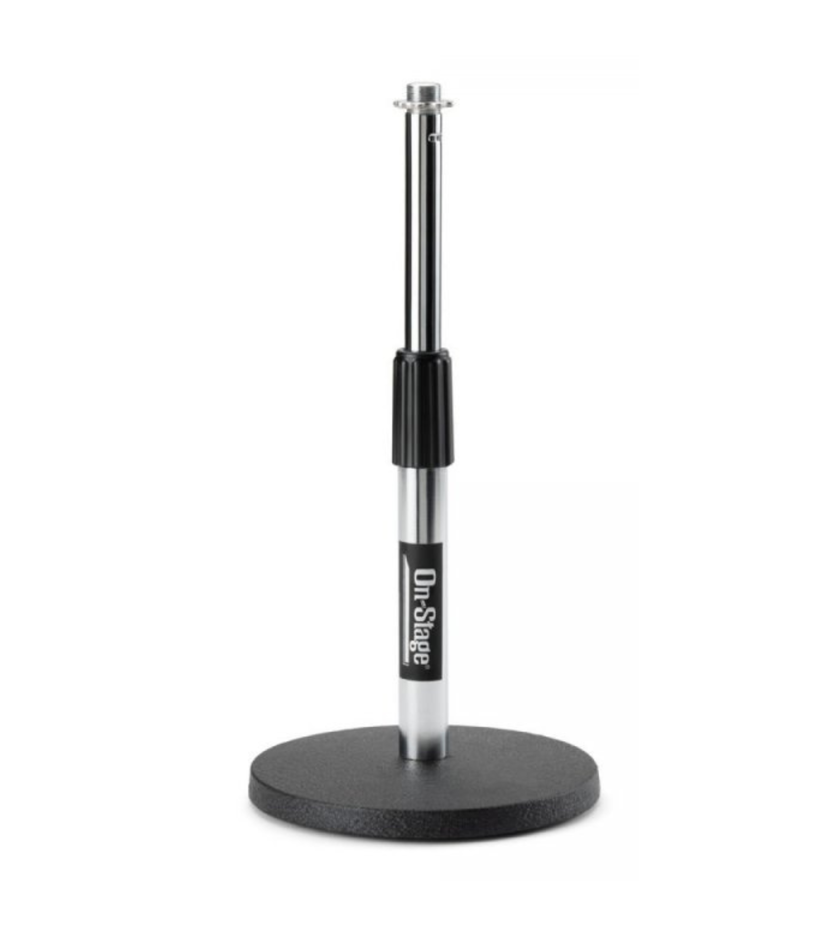 Our DS7200C Adjustable Desktop Mic Stand excels at short-height miking applications. The removable straight shaft adjusts in height from 9" to 13" and mounts standard mic clips and accessories. A heavy base provides stability and balance for reliable mic support. Nonslip rubber feet reduce vibrations to prevent mic rumble. A model of functional simplicity, this stand makes quick work of setting up a mic on a desk or podium.